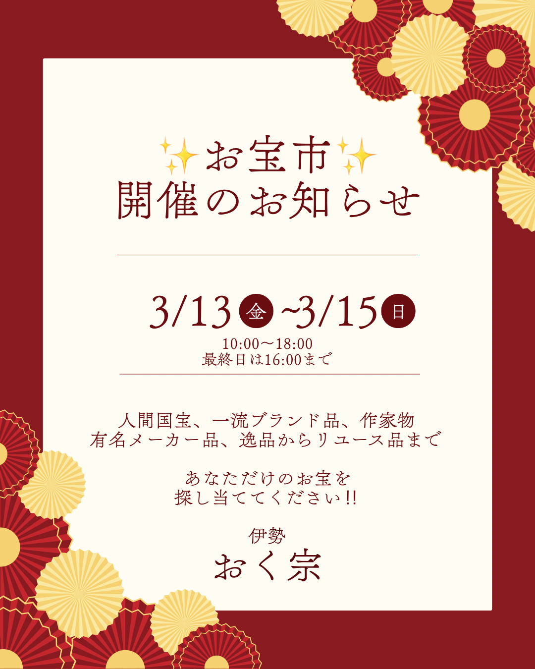 ◎とき 3月13日(金)・14日(土)・15日(日)